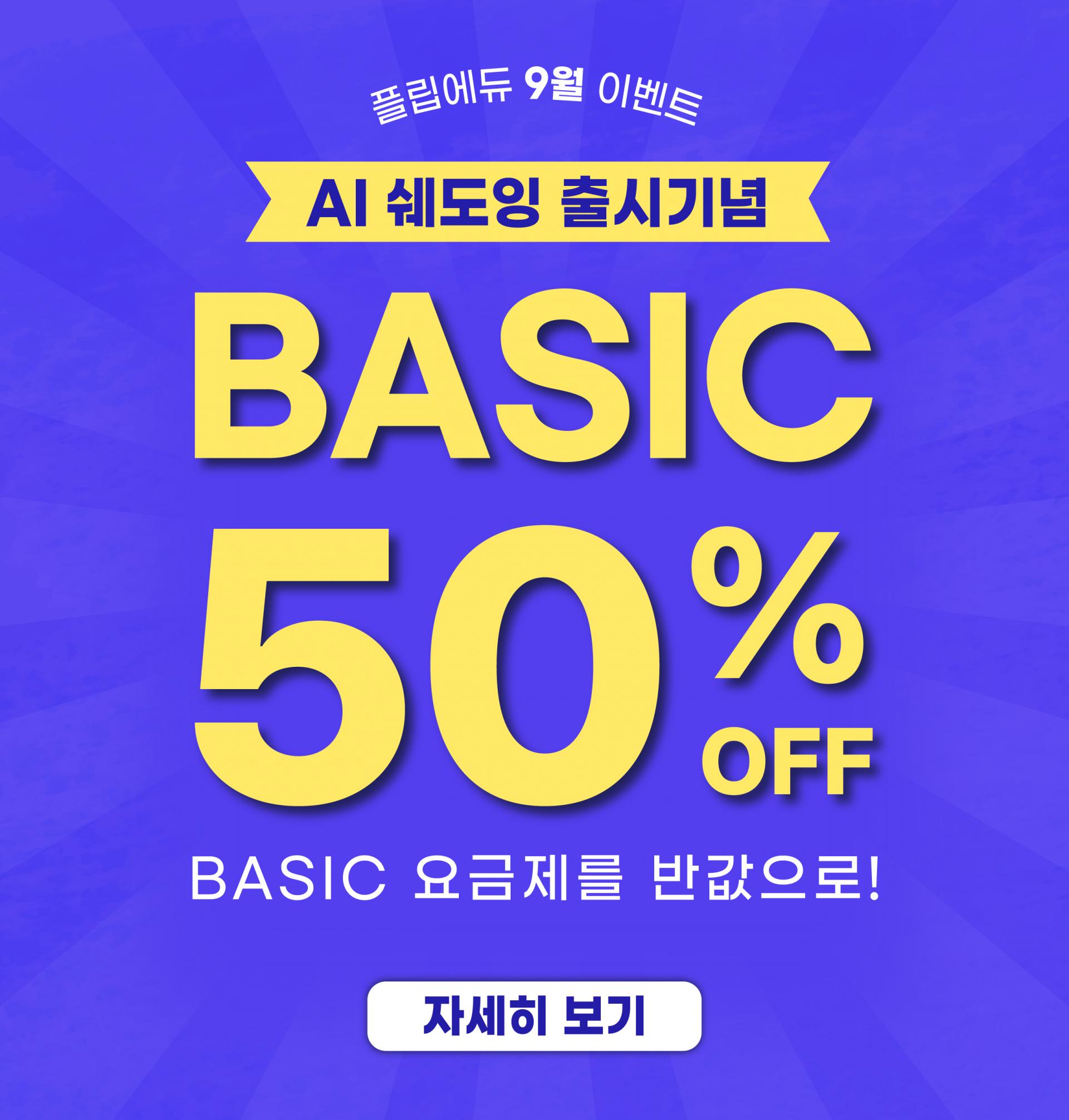 [9월 이벤트] AI 쉐도잉 출시기념 BASIC 요금제 50% OFF